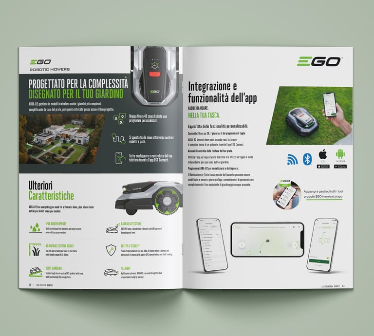 Worked with EGO to develop and refine brochure designs in Adobe InDesign, including rewriting and translating content into four different languages Italian, German, Dutch and French.